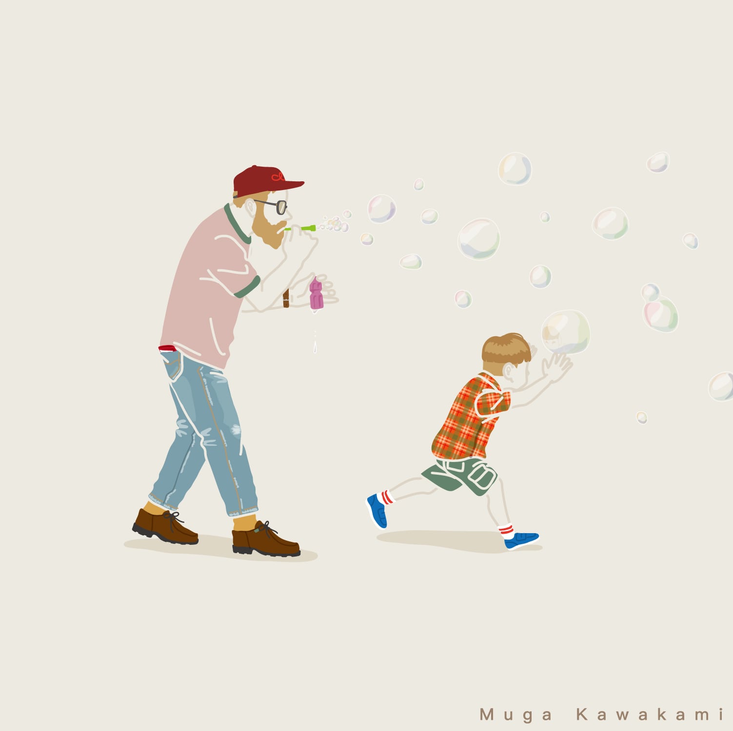 シャボン玉と親子 2021年ジークレープリント