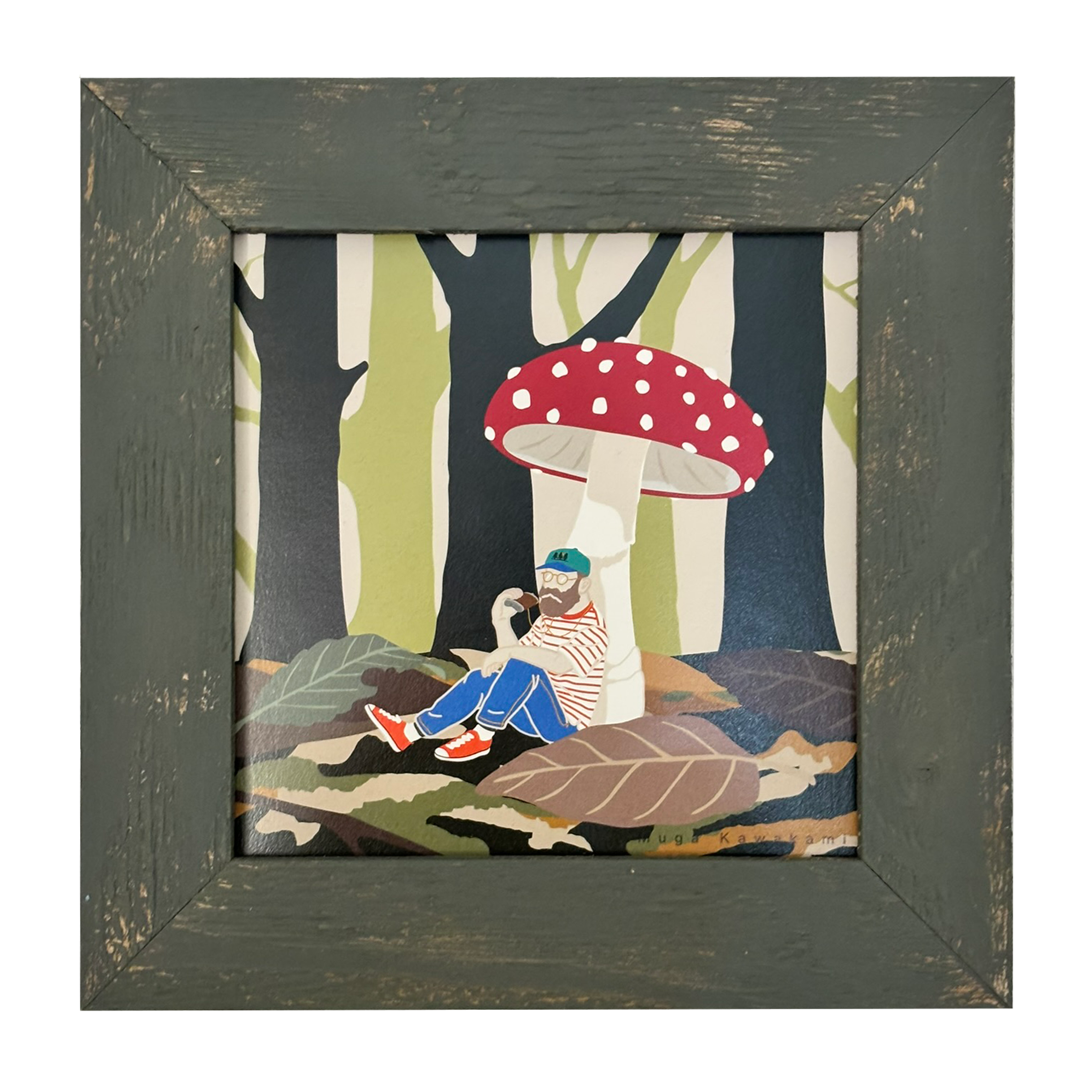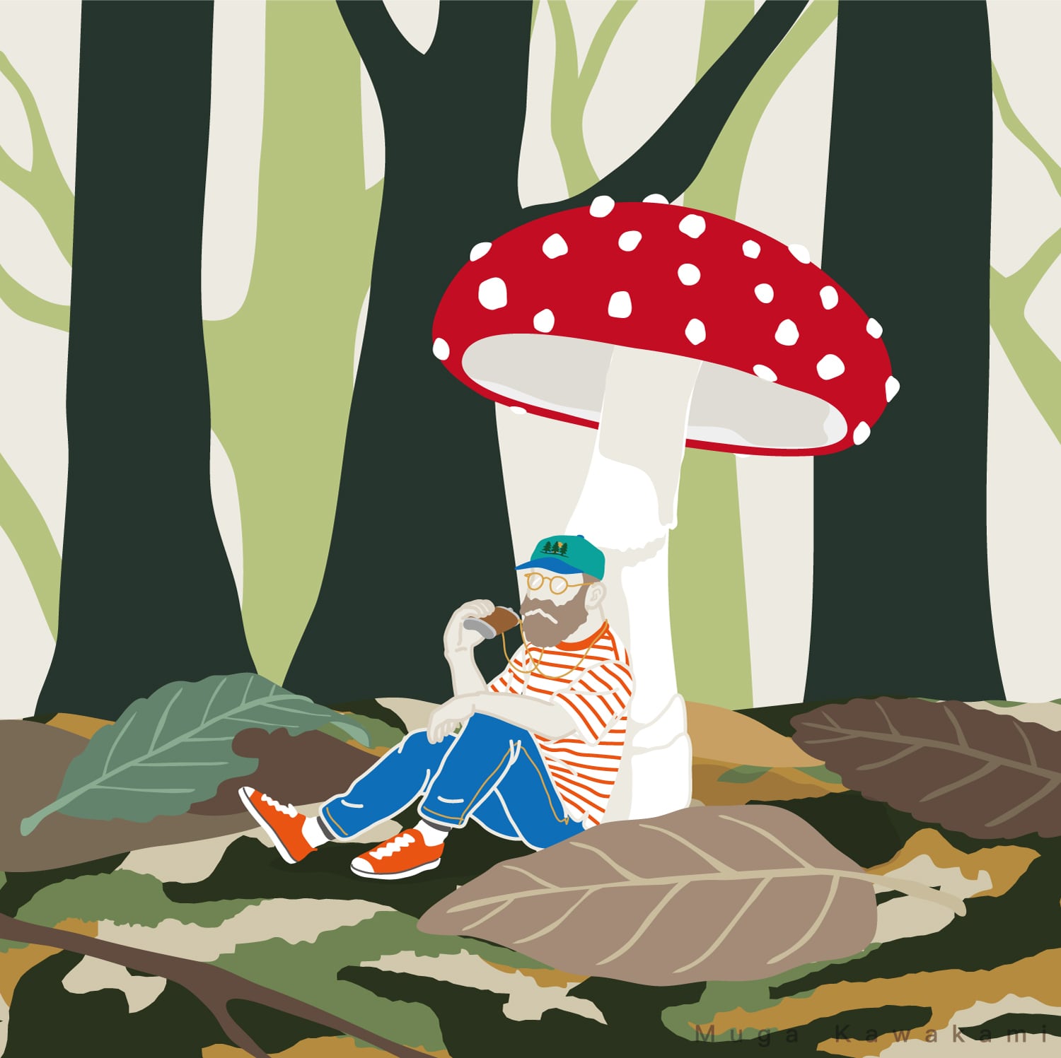 小人シリーズを作るにあたり、最初に思い浮かべたイメージ。毒キノコの下で休みながら、ウイスキーをあおる小人のおじさん。