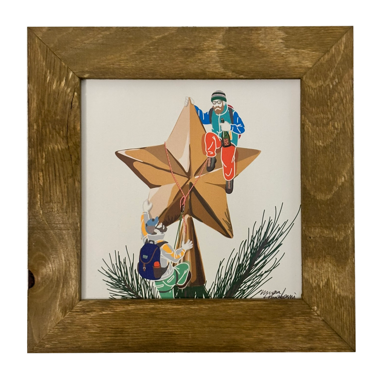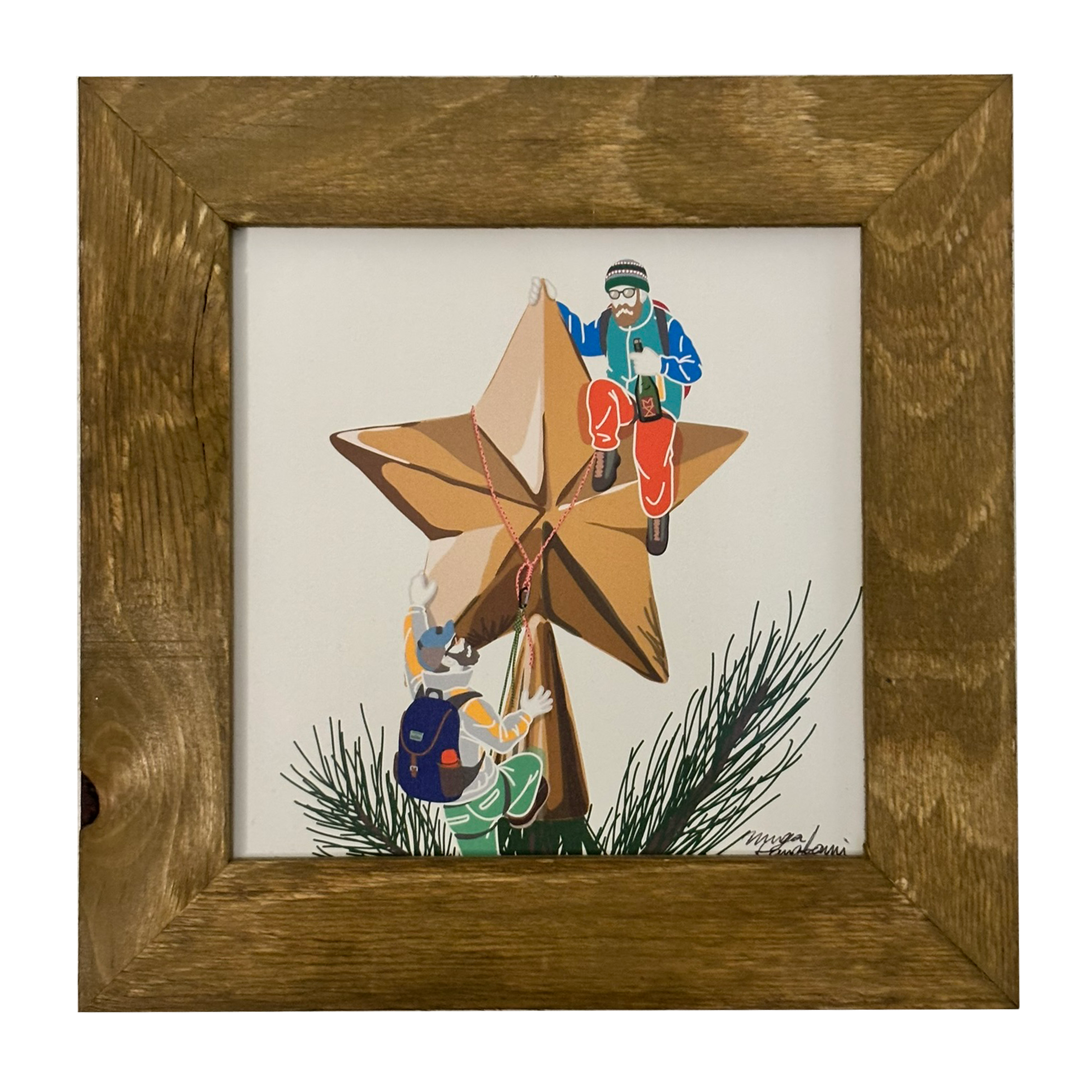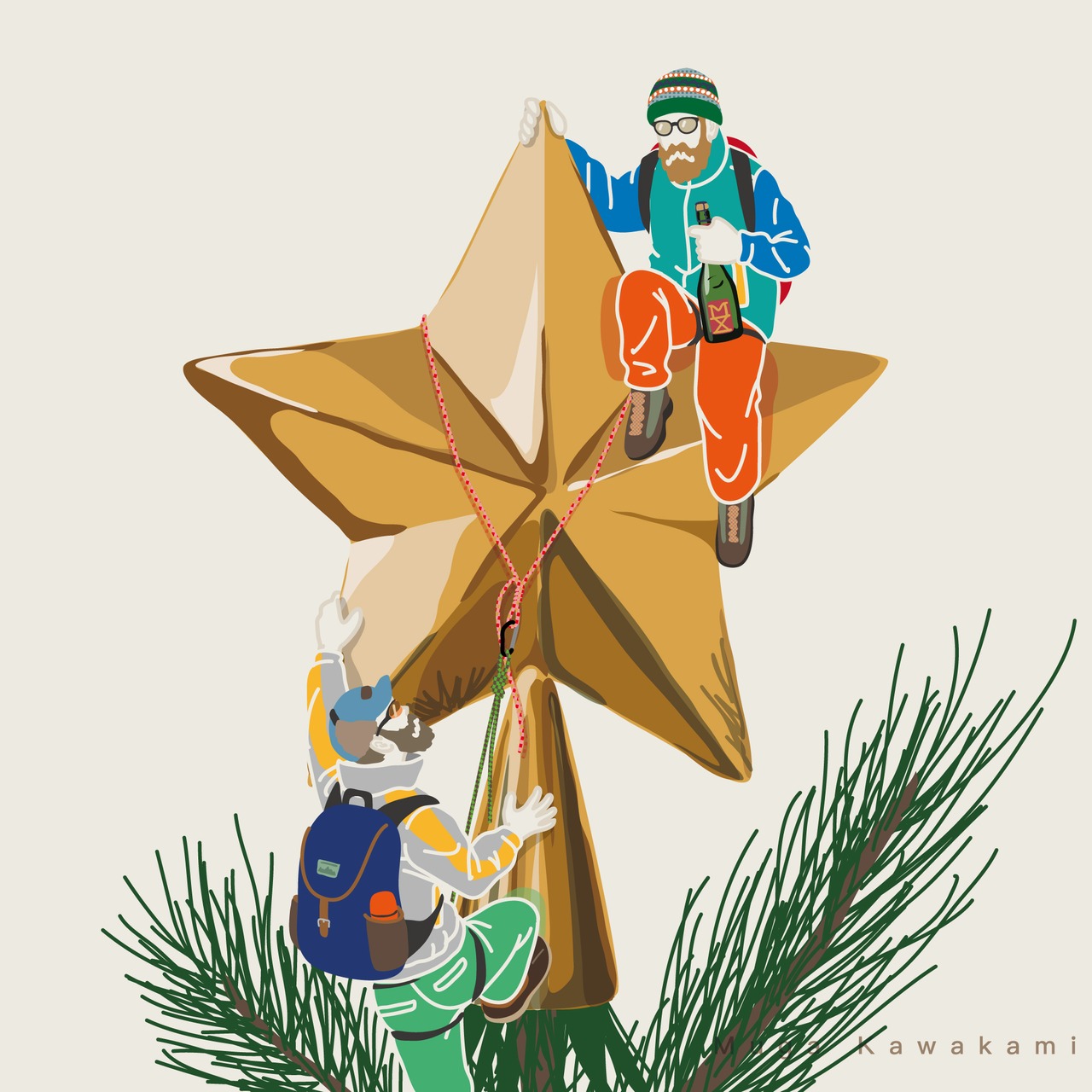クリスマスツリーの上の星で一杯やる為にロープ登攀する小人。人間に見つかりそうになったらオーナメントになりすます作戦。クリスマスにナリスマス。